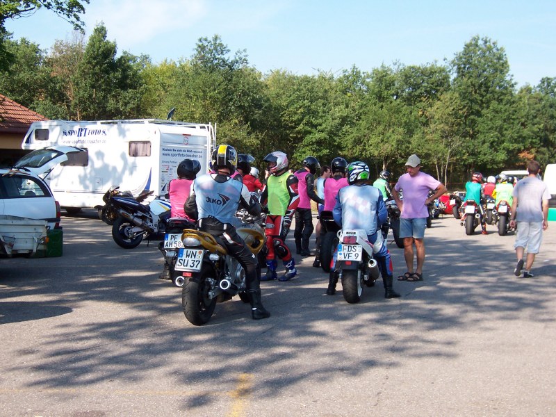 Ich hatte das Glück, daß meine Frau noch vor meinem 30ten Geburtstag alle geladenen Gäste angesprochen hat, und ihnen eine Beteiligung an ihrem besonderen Geschenk anbot. Letztlich bekam ich einen Gutschein für ein Renntraining meiner Wahl zu einem von mir bestimmten Zeitpunkt in diesem Jahr. Ich entschied mich für die Strecke L'Anneau du Rhin (PDF, 63kB) im Elsaß, da mir bekannt war, daß diese Strecke nicht so schnell und schön kurvig war. Damit also bestens geeignet für meine Maschine, die an einem kleinen Leistungsmanko leidet. Naja, das sehen viele sicherlich anders, aber manchmal wünsche ich mir schon 10 bis 20 PS mehr... Gerade mit vollem Reisegepäck und Sozia könnten es gar 30PS mehr sein.