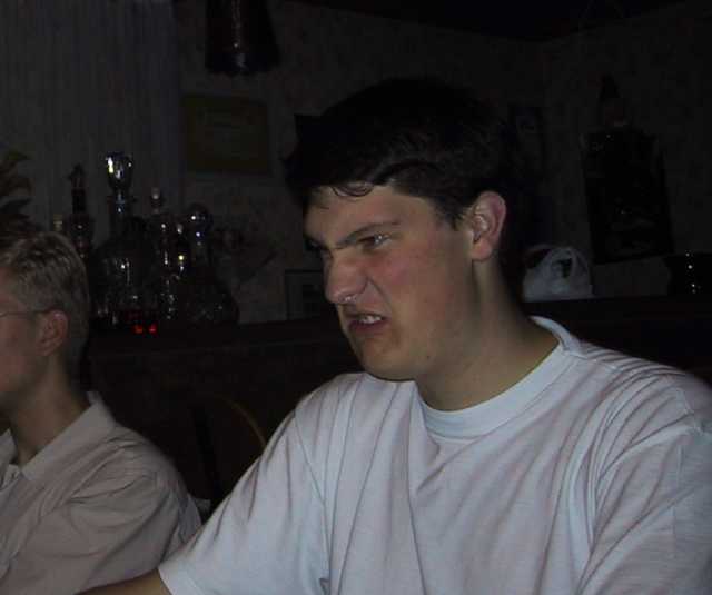Aggressor J'cool. Keine Ahnung, ob er dieses Gesicht wegen der 4ten Neuinstallation von Win98 an diesem Tage macht, oder weil er mal wieder im Schlitzermodus unterwegs war. Und das mit einem - für seine Verhältnisse - Minusrechner. |