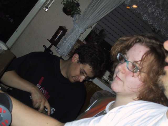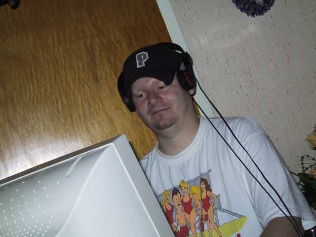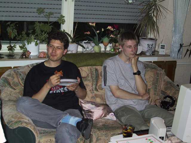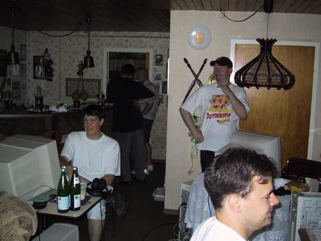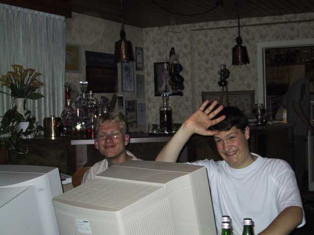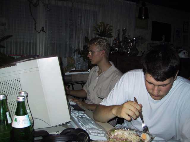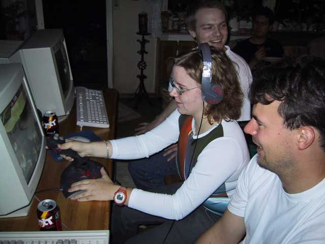 Von vorn nach hinten: BioNauT überläßt NaTurA seinen Rechner zum Zocken (NFS2SE) und im Hintergrund sieht man SiMoN lachen. |