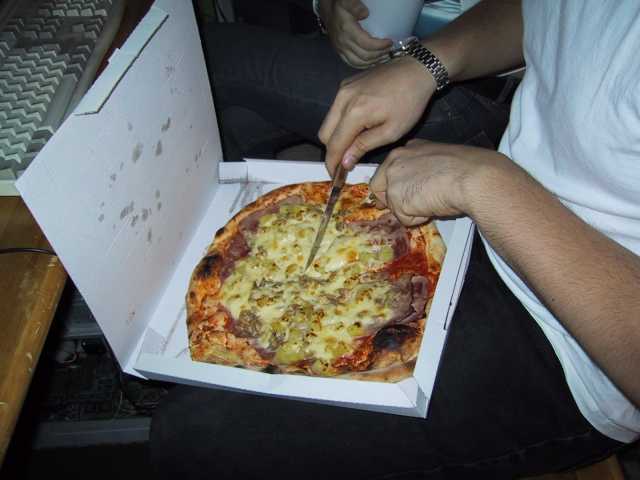 Bio-Pizza auf Knie bzw. Bios Pizza auf BioNauTs Knie. Zudem war er dumm genug einen nicht zu verachtenden Anteil seiner Mahlzeit NaTurA zu spendieren. |